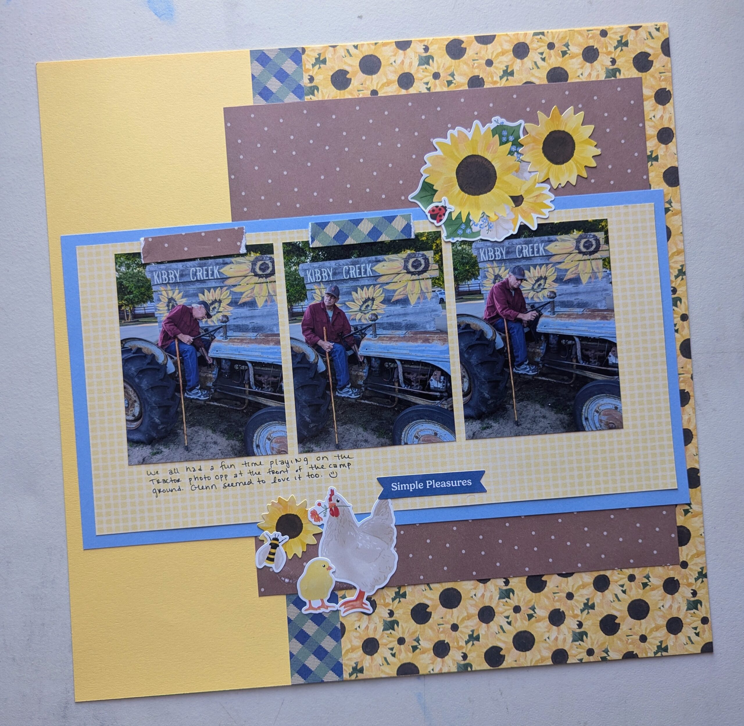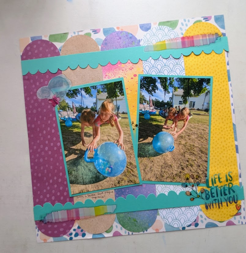 I’m loving this collection, and creating with it was so fun! I enjoyed making this playful page with an older layout idea from the Creative